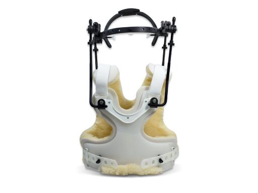 Aparato ortopédico que se utiliza para inmovilizar y proteger la columna cervical y cuello después de una cirugía o accidente.